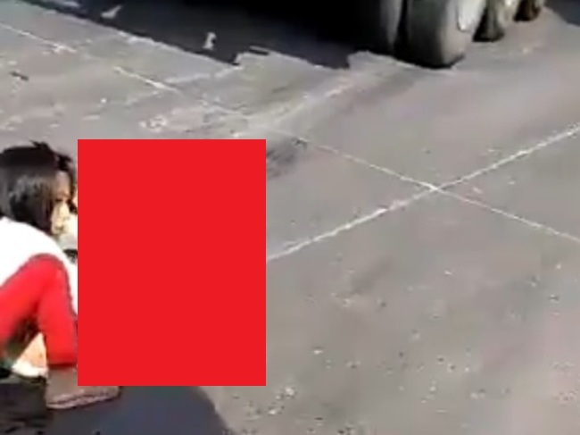 gif_animation 中国にて、幼い女の子がトラックに潰されて死亡した母親に寄り添う様子。その他、さらに幼い子供も被害に遭っているようですが、安否は不明。