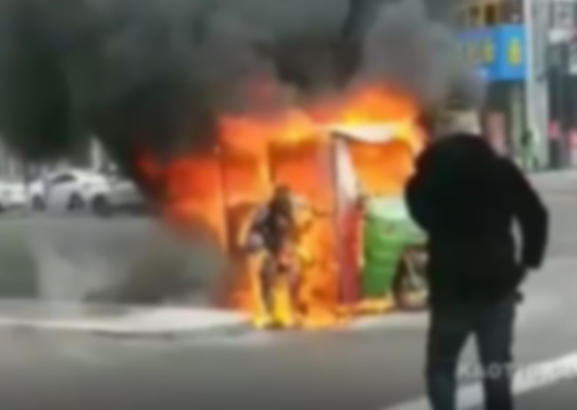 gif_animation 中国にて、街中に置かれていた「触れてはいけないボックス」(変圧器)に運悪く衝突したライダーの姿が衝撃的だった動画。感電炎上、まるで地獄のような「死」。