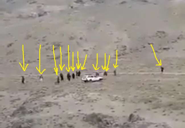 gif_animation 荒地にポツンと停車された、”謎の車” に近付いた15人ほどの人達が一瞬にして死亡する衝撃映像。ちなみにこの場所は中東の、テロリストと軍の紛争地帯である…。