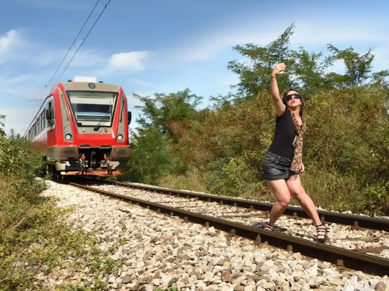 gif_animation ダーウィン賞(世界一ヒドい死に方)ノミネート動画、最新。海外にて、線路を横断しようとした(あるいは度胸試しであった、スリルな写真を撮ろうとした、という情報も)女の子が、こうなる瞬間…。(※ TOP画は完全にイメージ)
