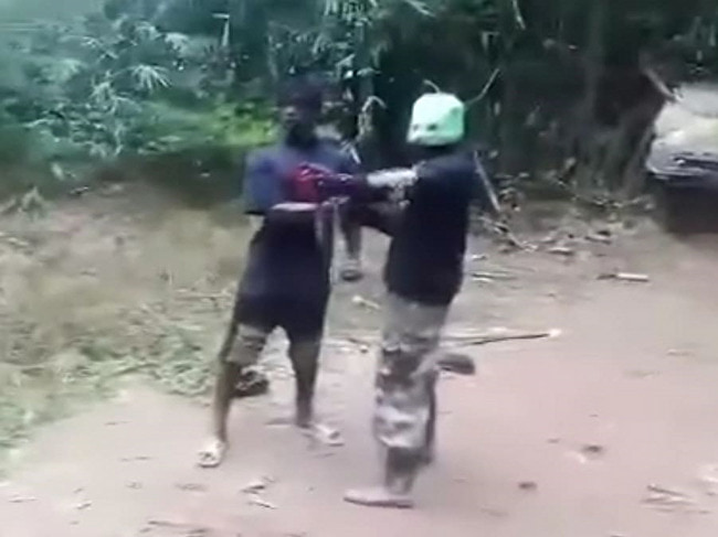 gif_animation ナイジェリアにて、カルト教団の ”絶対に死なないお守り” を持った信者を、別の信者がライフル銃で撃つ衝撃動画。案の定信者は「その後死亡」しているが、教団によるとこのお守りを持っていて死亡した人間は彼が初めてだそうだ。
