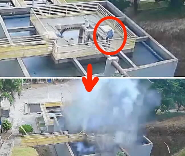 【衝撃映像】下水処理場がいきなり爆発!⇒ 奇跡的に生き延びた男、3秒後まさかの死に方する