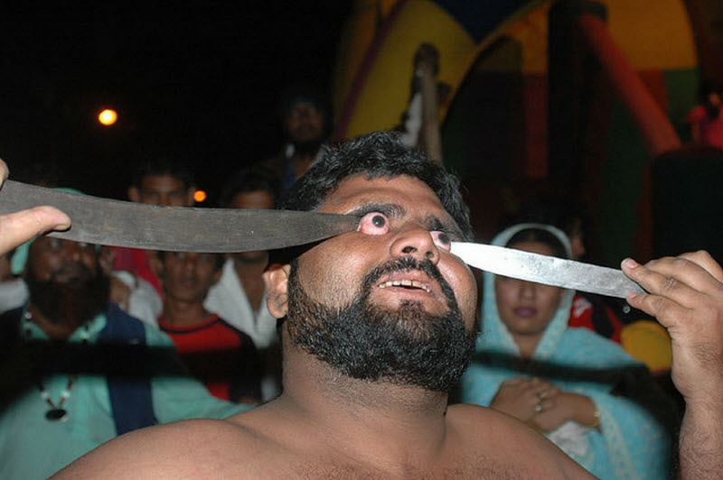 インドで行われる祭りの一環として…。大丈夫、少なくともこのギャラリーで ”それ” が飛び出るなんてことはないのだから。ただ1つだけ注意書きがあったので引用しておくのなら、決して真似をしないように。[9]images