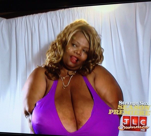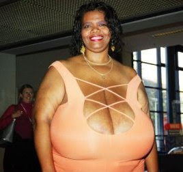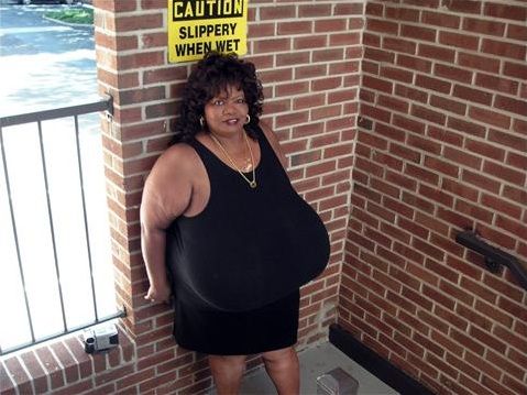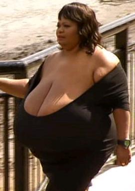 ⇒ 彼女の名前は「アニー・ホーキンス・ターナー」。現在53歳の彼女は、”世界一大きな胸(天然のもの)を持つ女性” としてギネスに登録されています。