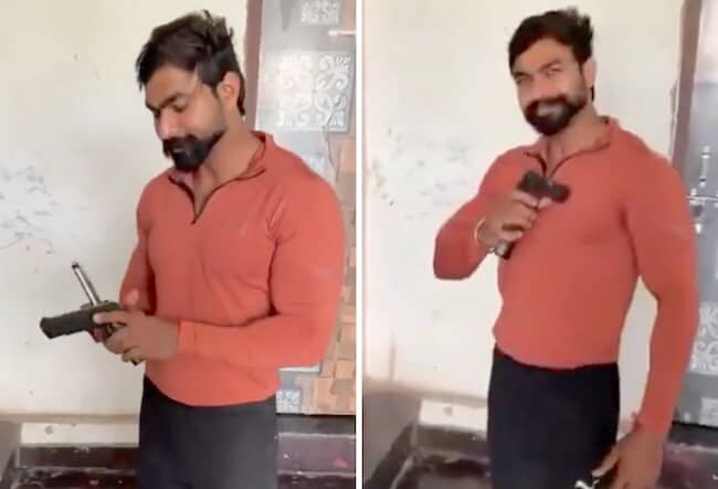 インドにて、ありえない死に方したDQN(28歳)の動画が「理解に苦しむ」「アホすぎる」としてSNS上で拡散され5000万再生を超えている模様。本物の銃で遊んでいる最中、ミスって自分の心臓を撃ち抜いてしまい死亡・・・。