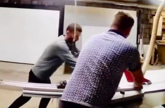 gif_animation ロシアにて、こういうリアルな工場事故が一番怖いよな…っていう監視カメラ映像。家具工場で作業員の男性が指2本を切断する瞬間。再建できたのかは不明。