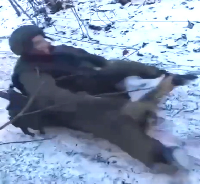 gif_animation ロシア VS ウクライナの戦場で、ロシア軍と共にソリ遊びをしていた北朝鮮兵士(と紹介されていた)。しかしその場所には地雷が隠されており、10秒後彼は重傷を負った…という衝撃動画が話題に。