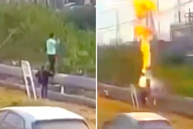 【閲覧注意】イグアナを捕まえようとした男、6万9000ボルトに触れ一瞬で消し炭になる…