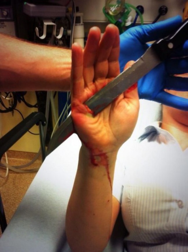 【閲覧注意】冷凍ハンバーガーをナイフで割ろうとした女性は