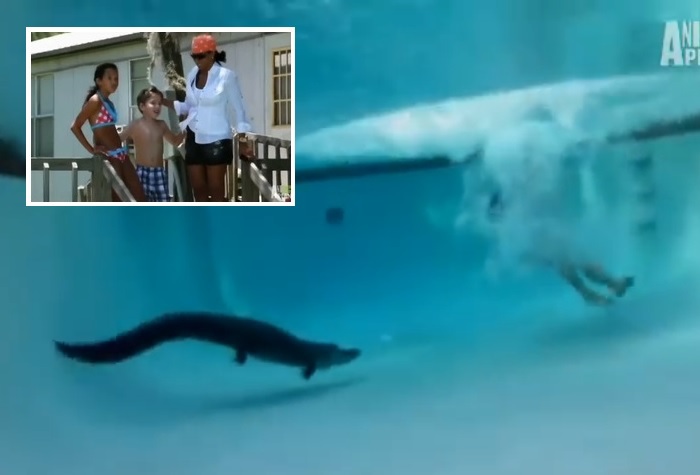 【動画】庭のプールにワニがいたのでプロに頼んだんだけど捕まえ方がヤバい