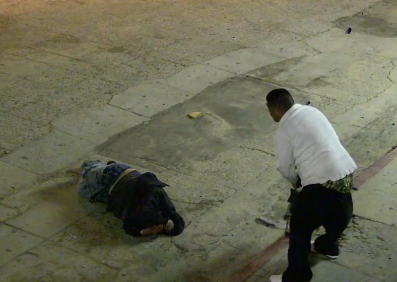 gif_animation アメリカ・カリフォルニア州ベニスにて、ホームレスを殺しても構わないぐらいの勢いでボコボコにする男たち。おそらくホームレスは無事?詳細は不明。