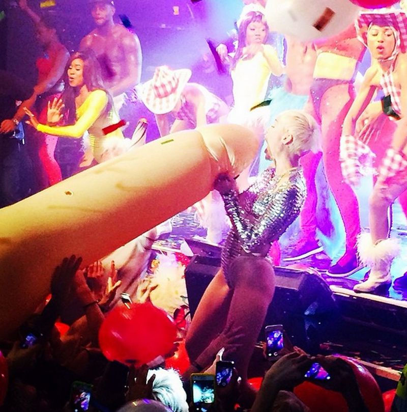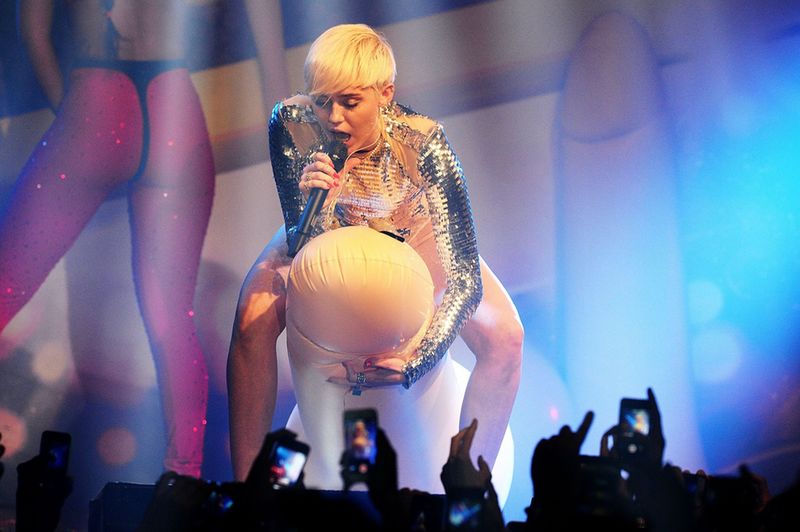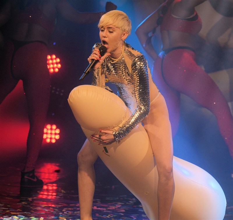 アメリカの人気アイドル、「マイリー・サイラス(21)」によるライブパフォーマンス。「ダッチワイフのチ●コを咥える」、「観客に股間を触らせる」などの奇行。以前紹介した ”