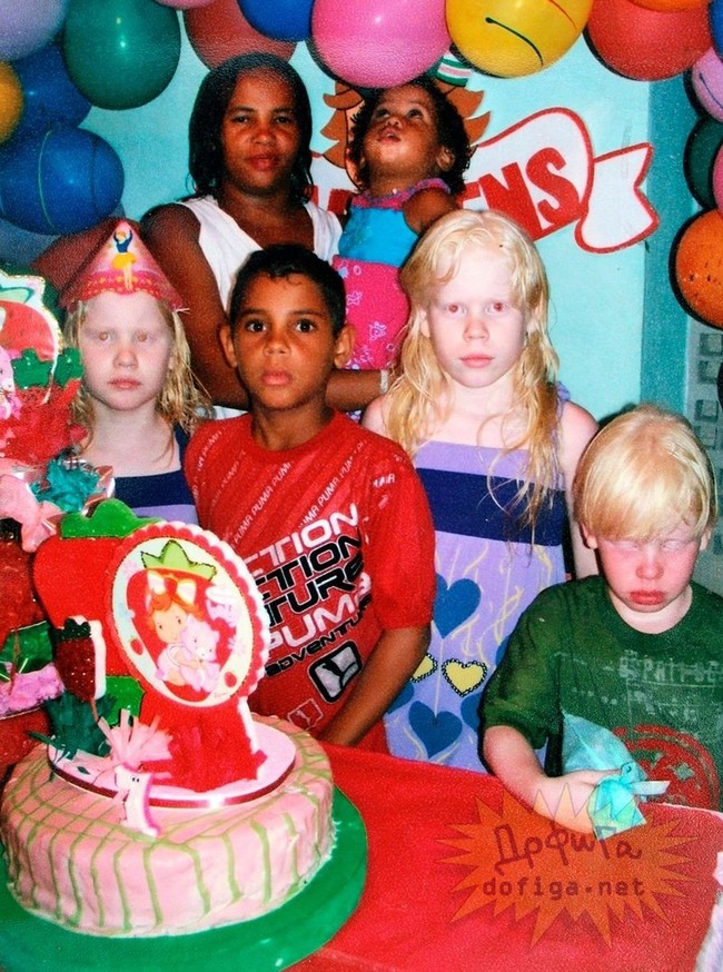 ブラジルにて、黒人の女性が生んだ6人の子供たちのギャラリー。6人の内3人が、数万人に1人の確率で発症すると言われるアルビノ(先天性白皮症)、という世にも珍しい事例。[9]images