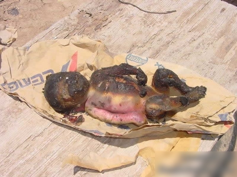 【閲覧注意】さすがに自分の赤ちゃんを焼ききる事は出来なかったようで