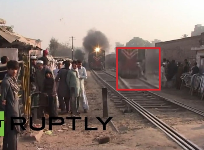 それは自殺だった? パキスタン・ペシャーワルにて、こちらへ向かって走ってくる電車に巻き込まれ、その後死亡した男性の映像。
