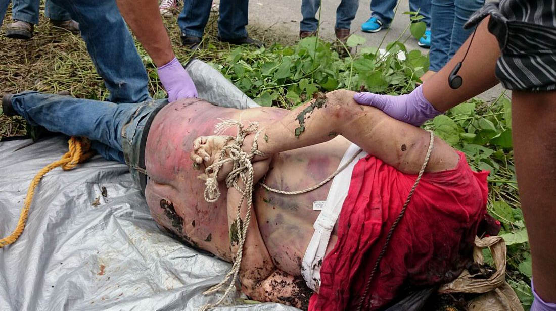 gif_animation メキシコにて、明らかに残虐な拷問の受けたと思われる女性の死体が発見された。死体の目はテープで塞がれ、手足はロープで拘束されていた。腐敗が進んだ死体は顔の大部分を昆虫や害虫に食べられている。[5]images