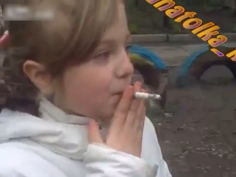 ロシアでの日常? 幼い少女がタバコを吸っている光景。