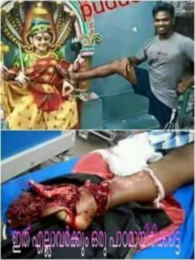 gif_animation インドにて、国内でも多数派を占める民族宗教、”ヒンドゥー教” の神の像を蹴る侮辱的なポーズで写真を撮った男性がその後、マチェーテ(なた)で何者かによって切り刻まれるという恐ろしい結末の画像。[3]images
