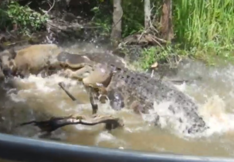 【動画】ニューオーリンズの川を運行中、野生のブタに野生のワニが襲い掛かる!
