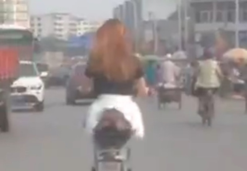 中国にて、前を走るスクーターの女の子のスカートの下の ”下着” が気になって仕方がない映像。