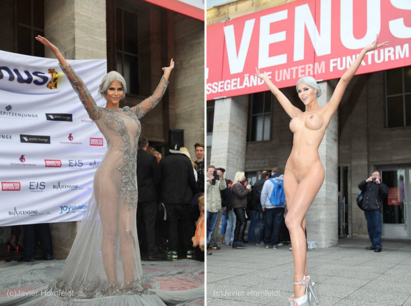 イベントに登壇した人気女優、ドレスが透け透けすぎてピンク乳首が丸見えになってしまうwww -