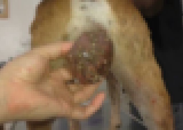 キンタマにうじ虫が沸いてきた映像。かわいそうな犬。