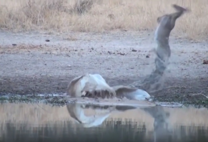クロコダイルに襲われた ”最弱の草食動物” 、とんでもない身体能力を見せ逃亡