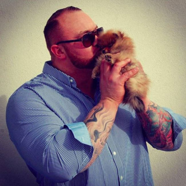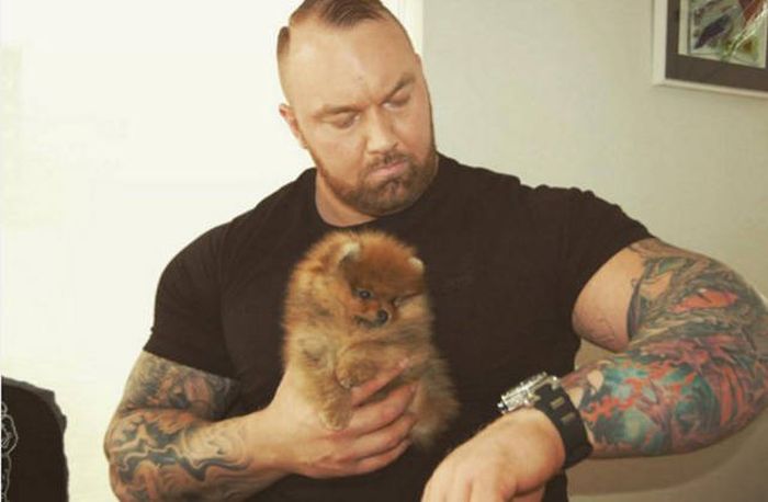 gif_animation 身長2.06m、体重180kg、元プロバスケットボール選手であり現在は俳優としても活躍するアイスランドのビッグマン、「Hafþór Júlíus Björnsson」さんのペットが可愛すぎると話題の画像。彼の大きさと比較すると更に可愛さが増す模様。[8]img