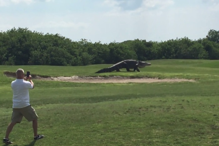 フロリダのゴルフ場に怪物みたいな超巨大ワニが現れて話題に