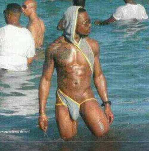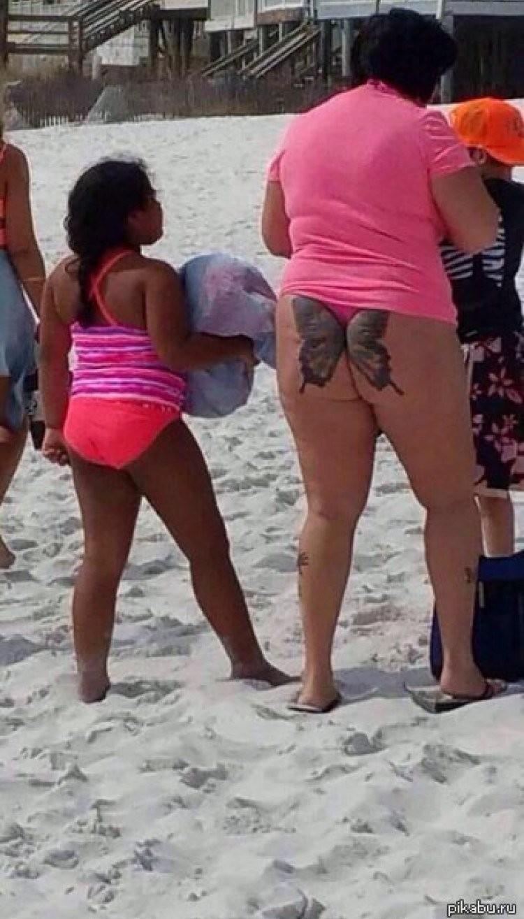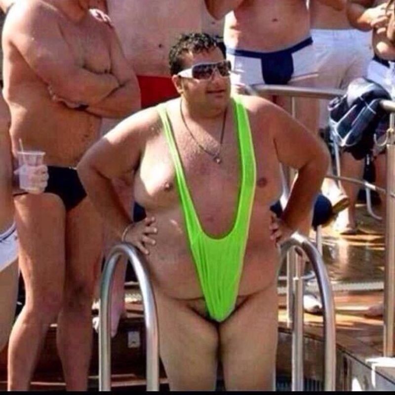 【画像】性器見えそう…。海水浴場にとんでもない水着着てるやつがいる・・・