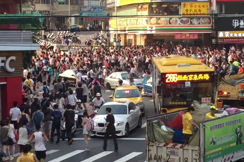 「ポケモンGO」が流行りに流行ってるという台湾で、街中にカビゴンが出現した結果、物凄い光景が繰り広げられた映像。レアポケモンに群がる人、人…。