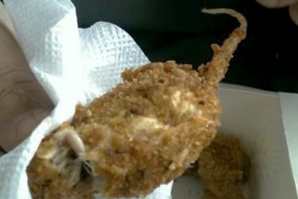 gif_animation ロシア・モスクワのケンタッキー店で、男性が購入したチキンの中に、まるでオリジナルチキンのように綺麗に丸揚げにされた「ネズミ」が混入していたとの事。ちなみにこの事件に関しては現在調査中であるとの事。[7]images