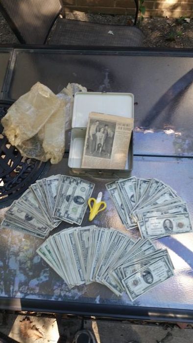 ⇒ 中古で買った家を修理中、地下室の天井でスーツケースを発見。中を見てみると、そこには1951年の新聞、そして ”現金23000ドル”(約238万円)が入っていた…。