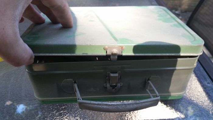 アメリカにて、匿名の男性がアップした画像。中古で買った家を修理中、地下室の天井でスーツケースを発見。中を見てみると・・・。[11]images