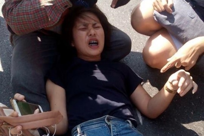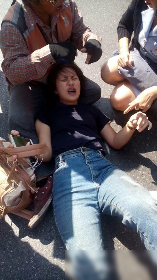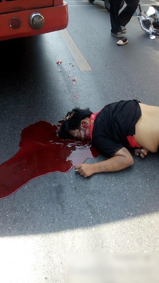 gif_animation タイにて、道端に倒れた女性。その横に、顔が潰れ、死亡した男性の姿。情報によるとバイクを運転していた男性が道を歩いていた女性にぶつかり、転倒した際にバスに頭を潰され、死亡したとの事。[3]images