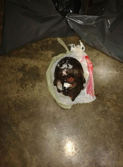 [関連動画]妻の頭を切断、それを手に持ち、最後(0:25~)には放り投げる男