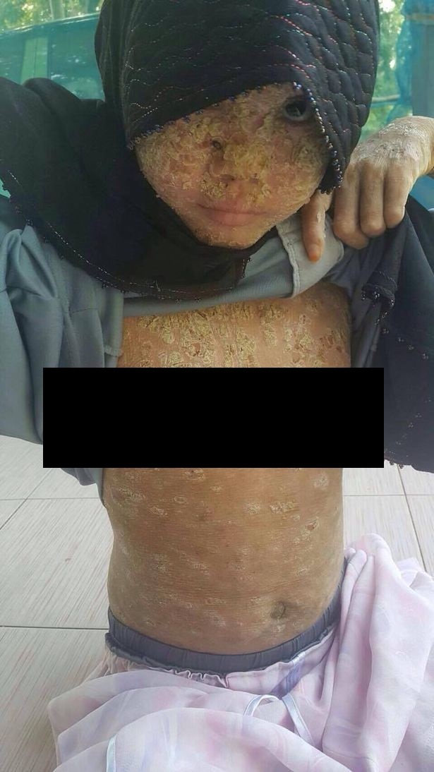gif_animation タイにて、9歳の女の子がおよそ2年間悩まされている病気、「乾癬」。皮膚が発疹を起こし、その後鱗(うろこ)化、ボロボロと剥がれ落ちるというもの。”特に重傷” だという彼女の顔・体…。(※ 1枚目は発症前)[6]images