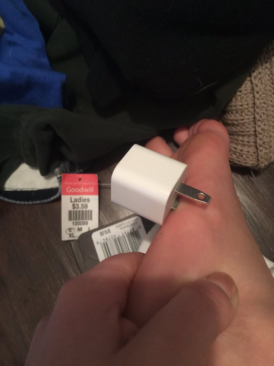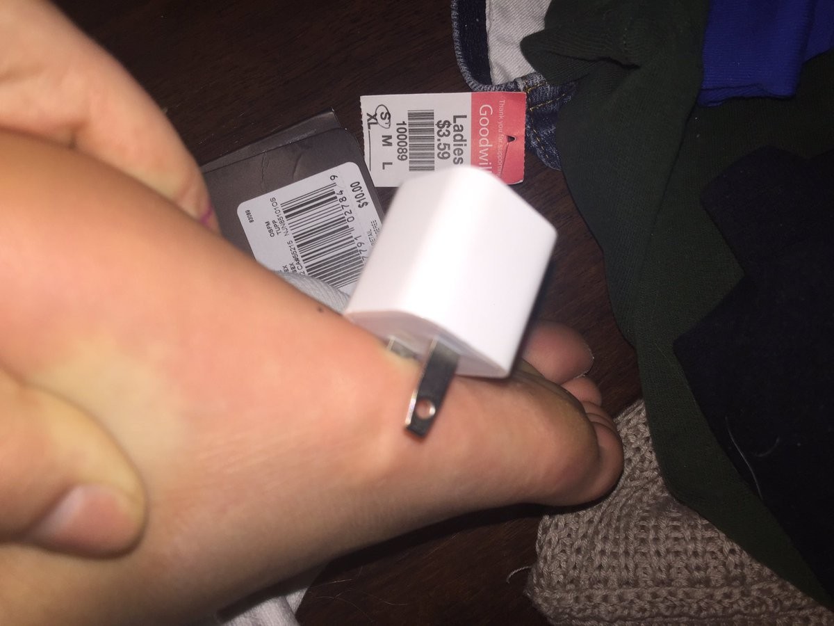 gif_animation 18歳の可愛らしい少女に、とんでもないものが突き刺さったと話題の画像。原因は間違いなく、汚い部屋か…。iPhoneの充電器(コンセント部分)vs. 足。[5]img