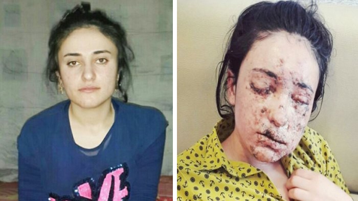 gif_animation イスラム過激派組織、ISISに18歳時に誘拐され、”セックス奴隷”(性奴隷)にされていた女性の姿。かつて彼女は美しい容姿をしていたが、脱走した際(※ その後救出される)に地雷を踏み、今でも生々しい傷跡が顔面に残されている。[8]images