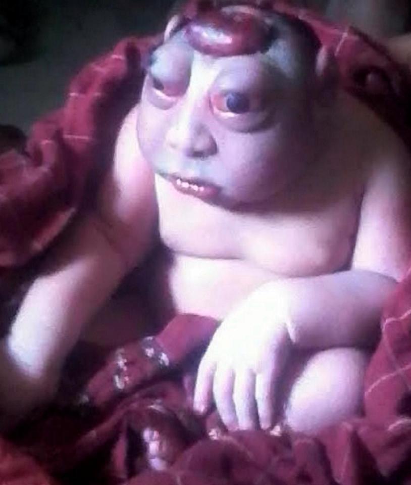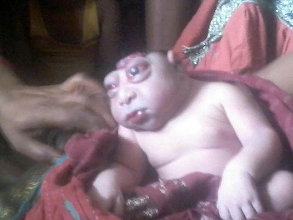 gif_animation インドにて、産んだばかりの母親が助産師からの受け取り、授乳を一時拒否したという赤ちゃんの姿。母親はその子を「エイリアン」と呼んだそう。おそらくは先天性の奇形、”無脳症” 。ちなみに母親は現在正気を取り戻しその子を育てているとの事。