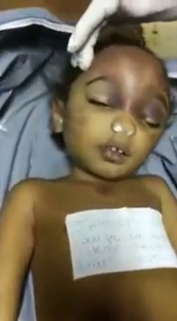 gif_animation ブラジル・リオデジャネイロにて、21歳の父親と18歳の母親(継母)によって日常的に暴力を振るわれ、結果死亡した3歳の娘の映像。夫婦2人は逮捕された。