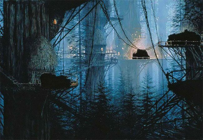 1983年に公開された大ヒット映画、「スター・ウォーズ エピソード6 / ジェダイの帰還」より、”絵” で構成されたシーンの数々。現在はCGやアニメーションが一般的になっているものの、当時はまだ ”絵” と実際のキャラクターを組み合わせていたそう。