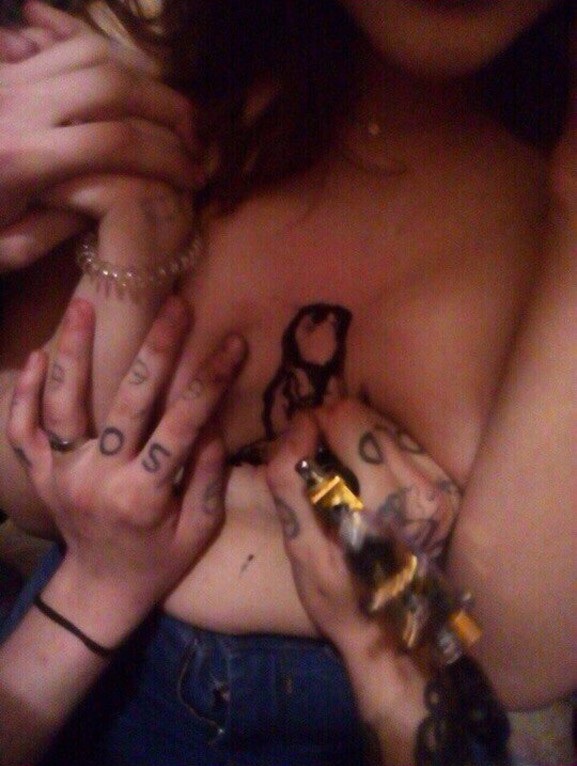 「おっぱいにチ●コのタトゥーを入れられた女子高生」のモザイクなし画像エロすぎだろ・・・