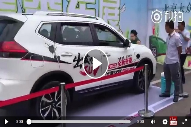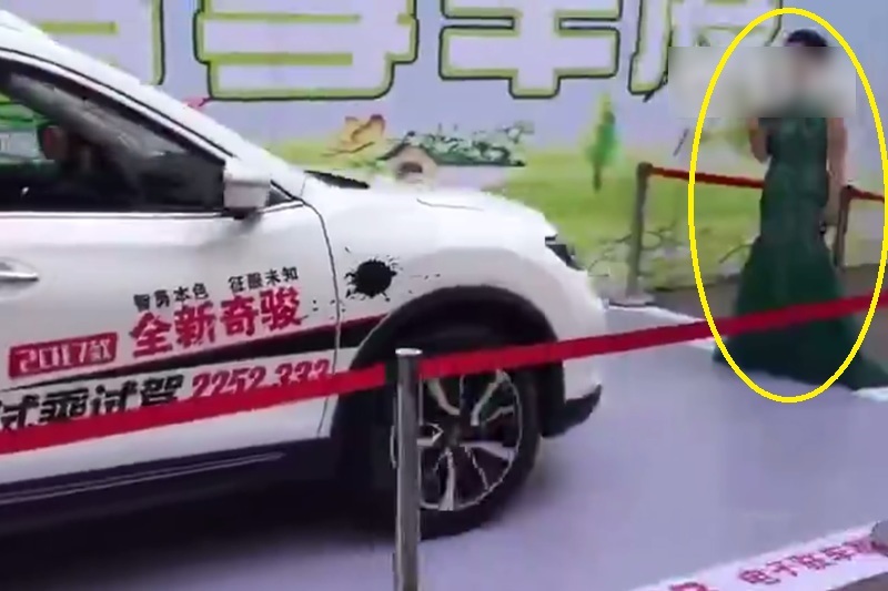 中国の自動車イベントで、女性を前に立たせ、「自動ブレーキシステム」のデモンストレーションを行った結果・・・。これは酷い。