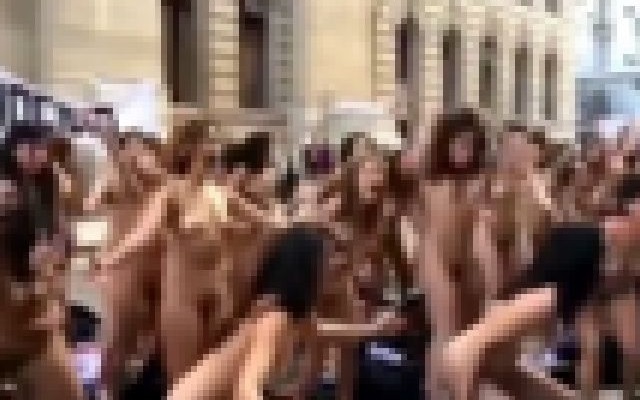【動画】街中で叫ぶ全裸の女性100人…頭おかしい…