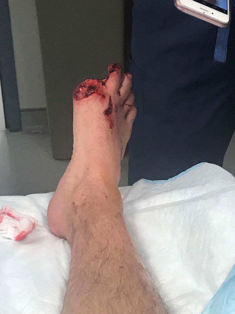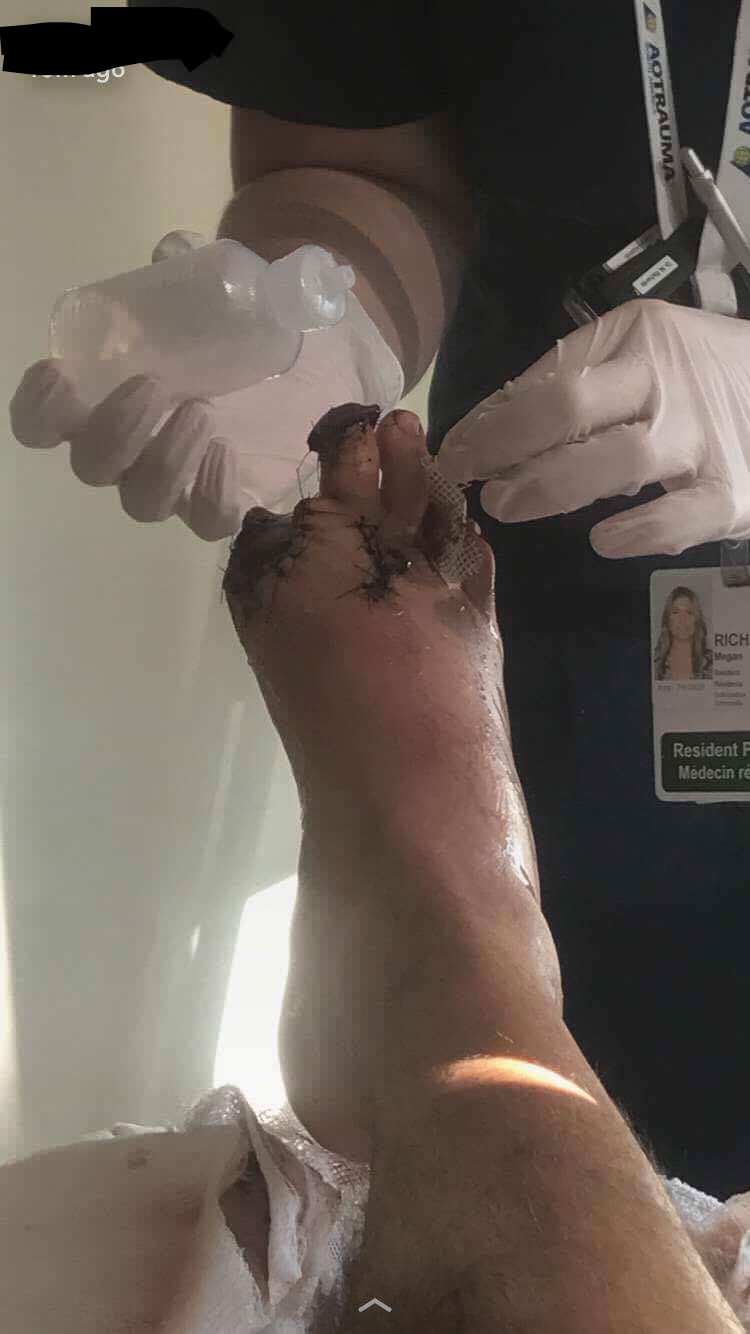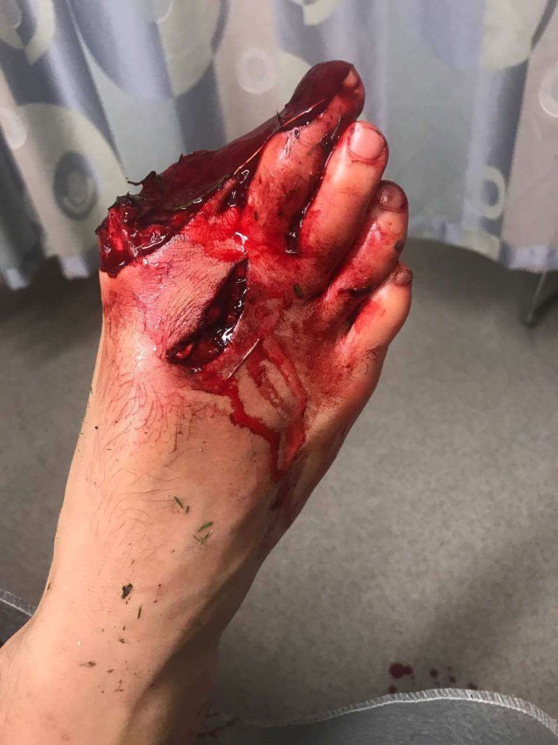 gif_animation 芝刈り機での作業中足の一部を持ってかれた男性…。病院から届いた自撮り。