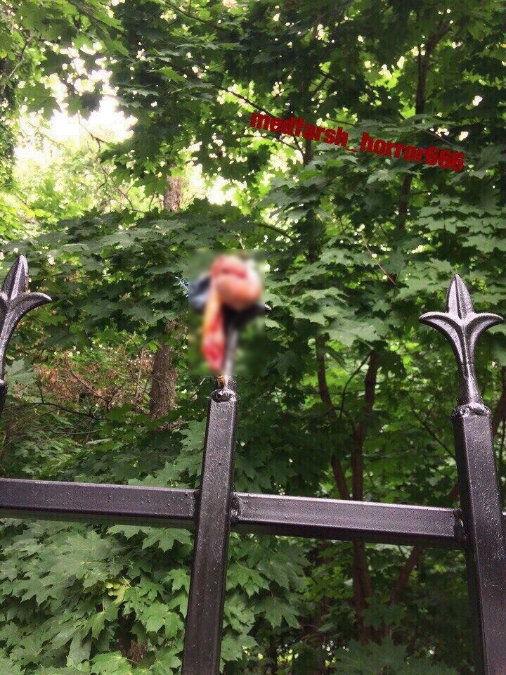 gif_animation 恐ろしいニュース。恐ろしい画像。ロシア・ペンザ州クズネツクにて、フェンスを飛び越えようとした男性の「チンコ」だけが引っ掛かり、丸ごと引き千切れフェンスに取り残されたというもの。(ボカシあり、下に止まっているのは蜂?)[1]images