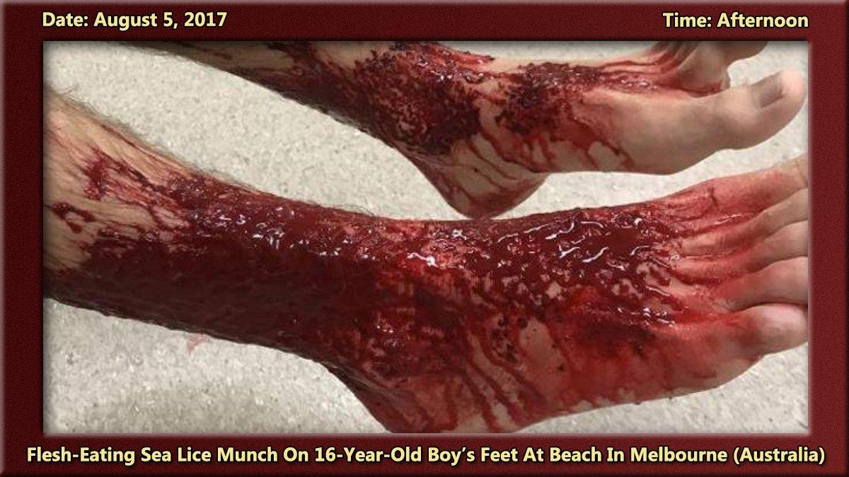 オーストラリア・メルボルンにて、海に入っていた16歳の少年が陸に上がると、足から大量の血が噴き出しており、病院に搬送されたというニュースが話題になっています。調査の結果、彼の足を襲ったのは ”肉食性の甲殻類” ではないかとされ、少年の「足」画像、及び甲殻類の動画などが公開されています。[5]images