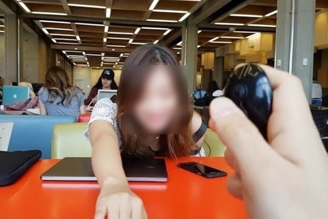 アメリカの大学で、”飛びっ子”(女性にリモコンローターを装着し男性がスイッチを押す)でイタズラしているバカップルYouTuberの動画・・・。これはひどい。
