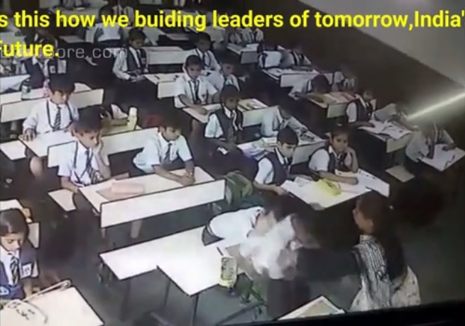 インドの小学校で、女教師が小学1年生(7歳)の男の子を40回殴るなどのやり過ぎた虐待行為を撮影され炎上しているよう。教室には監視カメラが設置されていたものの、女教師はおそらくそれに気付いていなかったと思われる。動画は虐待行為の一部。